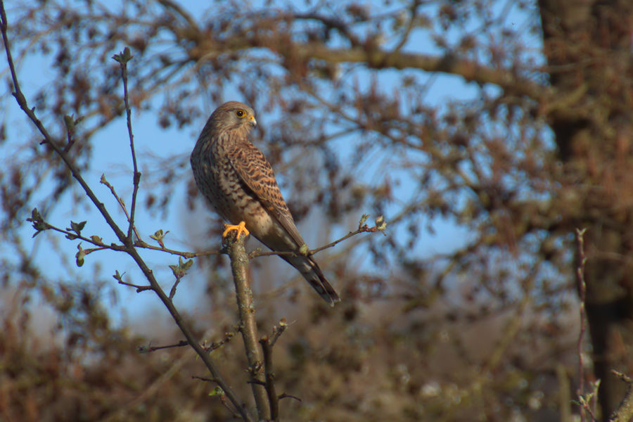 Während der abendlichen Runde mit den Hunden kann ich an der Bleiche einen Turmfalken fotografieren. Offenbar brütet ein Paar ganz in der Nähe.