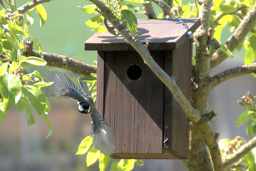 Heute waren wir im Glauberger Garten und haben dort zum ersten Mal gegrillt. Dabei haben wir festgestellt, dass unser Nistkasten angenommen wurde und die Kohlmeisen-Kinder schon geschlüpft sind.